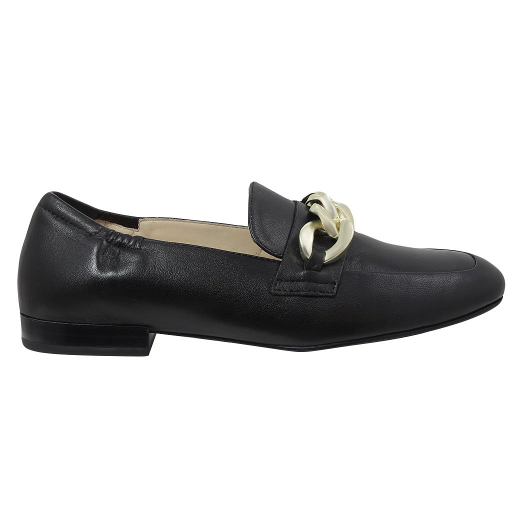 Steppari.fi:stä tyylikkäät nahkapintaiset loaferit ketjusomisteella. Irrotettava sisäpohjallinen. H-lesti (leveä).