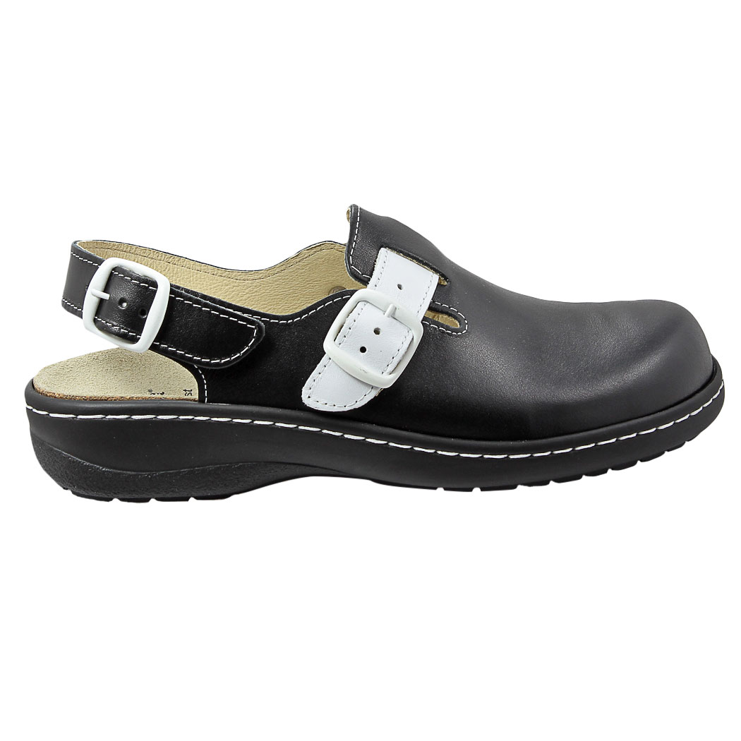 Steppari.fi:stä nahkainen umpikärkinen pistokas, joka soveltuu hyvin työjalkineeksi. Pitävä ulkopohja. Sisävuorit nahkaa. Irroitettava anatomisesti muotoiltu korkki/nahka sisäpohjallinen imee hyvin kosteutta, mutta kuivuu nopeasti. Säädettävät remmit päällä ja takana.