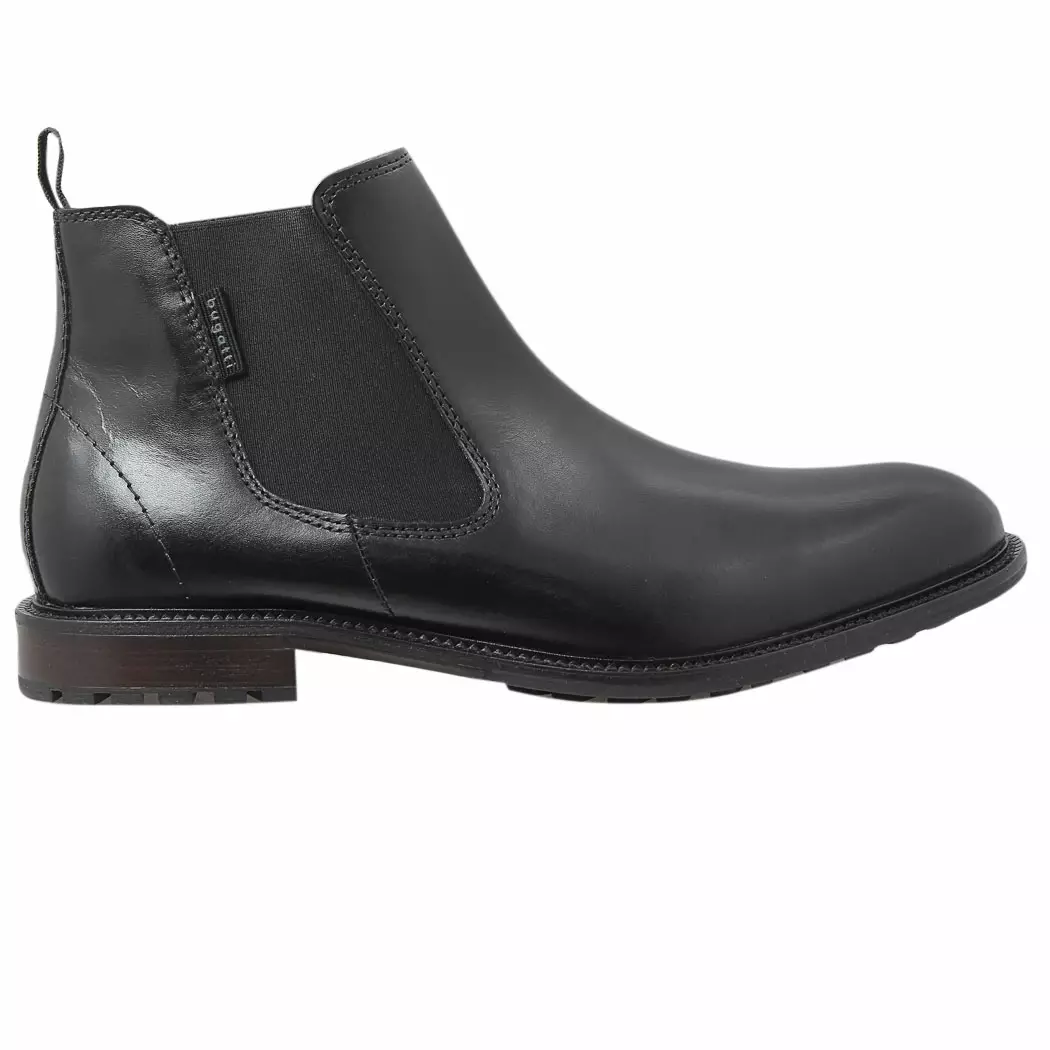 Steppari.fi:stä miesten nahkaiset nilkkurit ohuella tekstiilivuorella. Venykkeet molemmilla puolilla helpottavat jalkaan pukemista. Pehmustettu ja muotoiltu sisäpohjallinen.