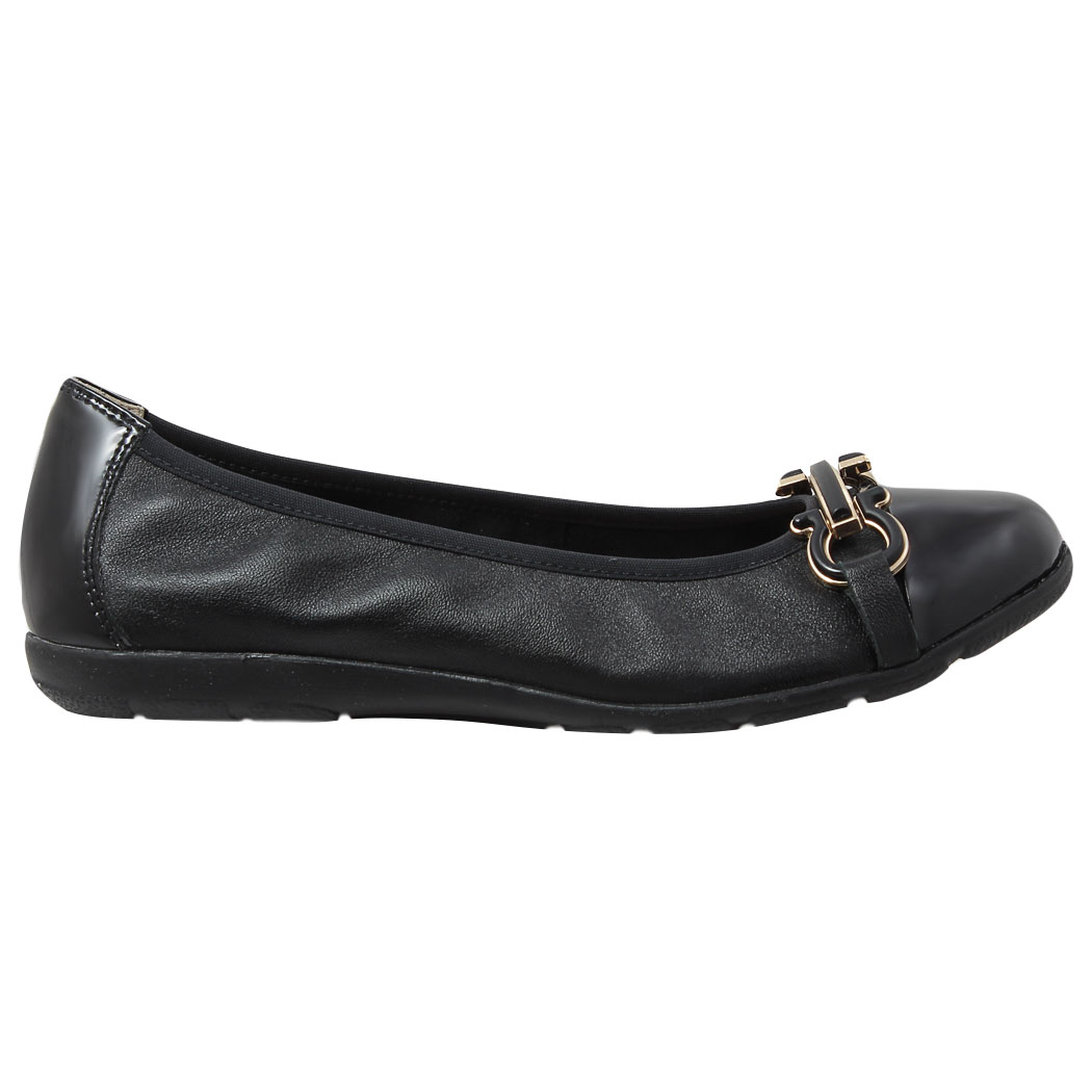 Steppari.fi:stä kevyt nahkapintainen ballerina pitävällä kumipohjalla ja metallikoristeella. Irrotettava pohjallinen.