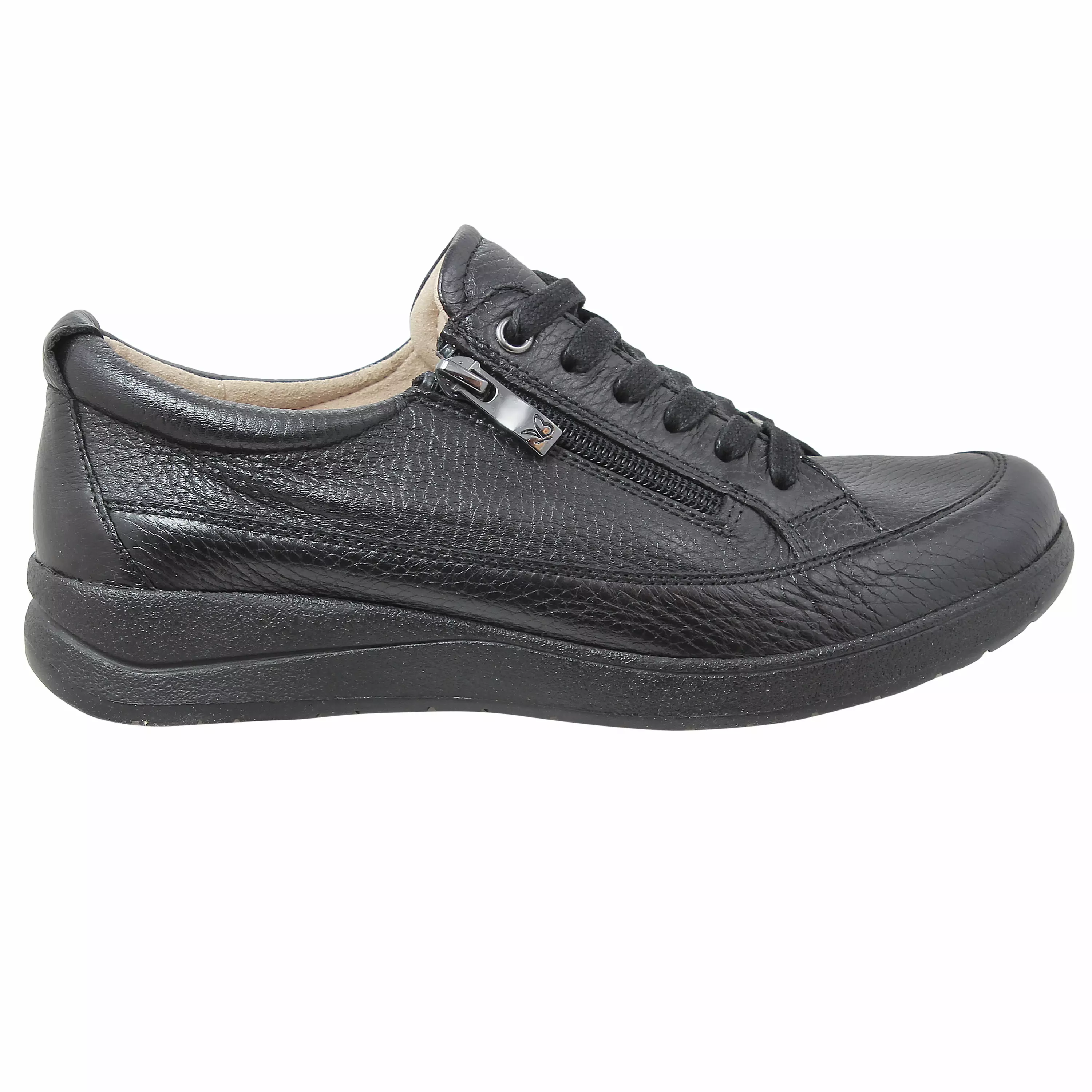 Steppari.fi:stä naisten kävelykengät. Ulkosyrjällä oleva vetoketju helpottaa pukemista, ja nauhoituksen ansiosta kengän istuvuutta voi säätää. Pehmustettu reunus lisää käyttömukavuutta. Irrotettava ja muotoiltu sisäpohja on hengittävä. H-lesti (leveä). Sisämitta 25 cm (koossa 38).