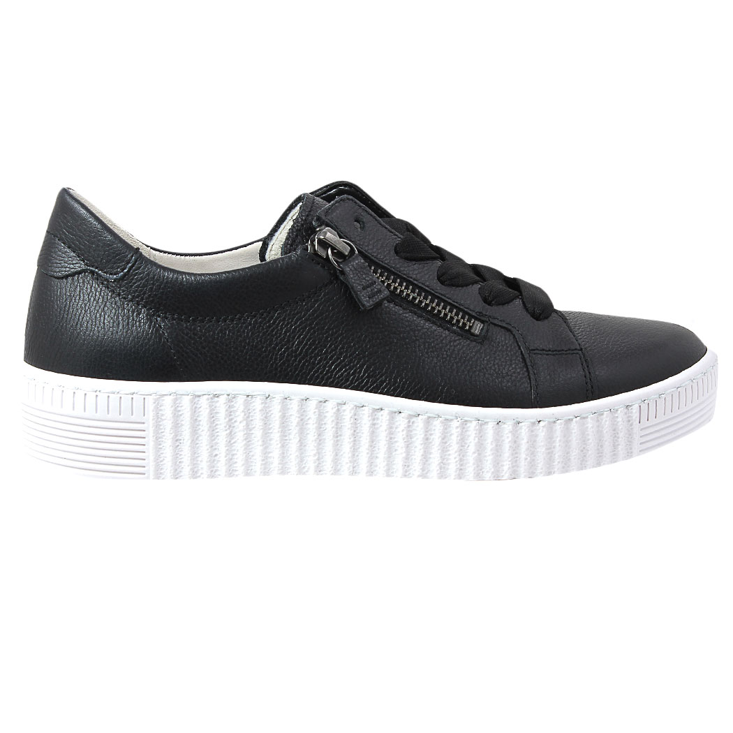 Nahkapintaiset tennarit kahdella vetoketjulla.