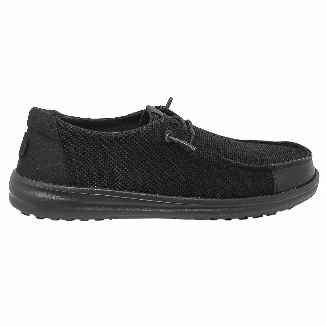 HEYDUDE Wendy Work CE Black on kesän kevyin ja mukavin työkenkä. Vettähylkivä päällinen, hengittävä vuori ja CE-hyväksytty, pitävä ulkopohja tekevät siitä täydellisen valinnan työkäyttöön. Kenkä on höyhenenkevyt, joustava ja reilun lestin ansiosta erittäin mukava jalassa. Irrotettavat pohjalliset ja konepesu max 30 asteessa.