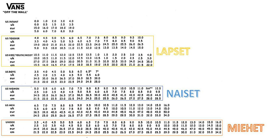 Vans taulukko