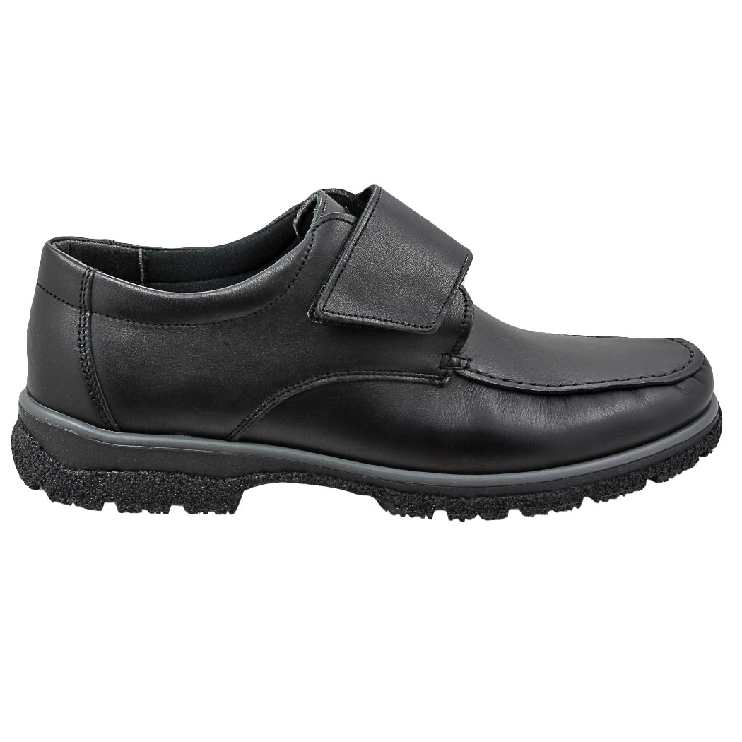 Steppari.fi:stä miesten XXL-laajalestinen nappanahka mokkasiini tarrakiinnityksellä ja GRIP-pitopohjalla. Irrotettava sisäpohjallinen.