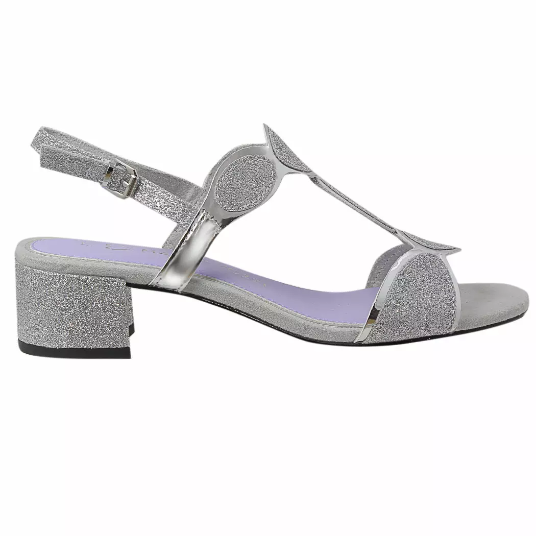 Steppari.fi:stä naisten juhlavat glitterpintaiset sandaalit, joissa on pehmustettu sisäpohja ja matalat tolppakorot. Sisämitta 24,5 cm (koossa 38).