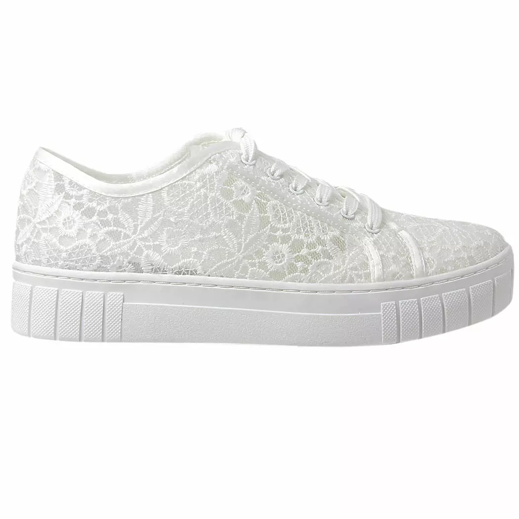 Steppari.fi:stä naisten kauniit, valkoiset pitsikuviolliset tennarit. Pehmustettu, irrotettava pohjallinen tekee kengistä erityisen mukavat jalassa. Sisämitta 24,5 cm (koossa 38).