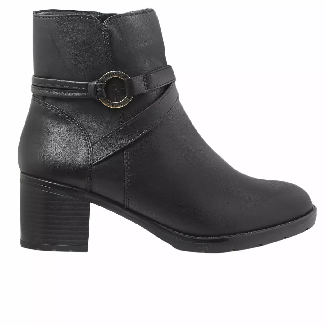 Steppari.fi:stä naisten tukevakorkoiset nilkkurit kätevällä vetoketjukiinnityksellä ja miellyttävällä tekstiilivuorilla. Irrotettava sisäpohjallinen lisää käyttömukavuutta. Varren korkeus n. 13 cm: Sisämitta 24,5 cm (koossa 38).