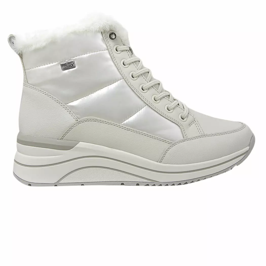 Steppari.fi:stä naisten talvinilkkurit, joissa on irrotettava sisäpohjallinen, kumisekoitepohja ja vuori keinokarvaa sekä teddyä. Päällä on joustavat nauhat ja mukaan tulee myös beiget joustamattomat nauhat. Kengissä on vettähylkivä REMONTE-Tex-kalvo, joka pitää jalat kuivina kosteissa olosuhteissa. Varren korkeus n. 10 cm ja sisämitta 24 cm (koossa 38).