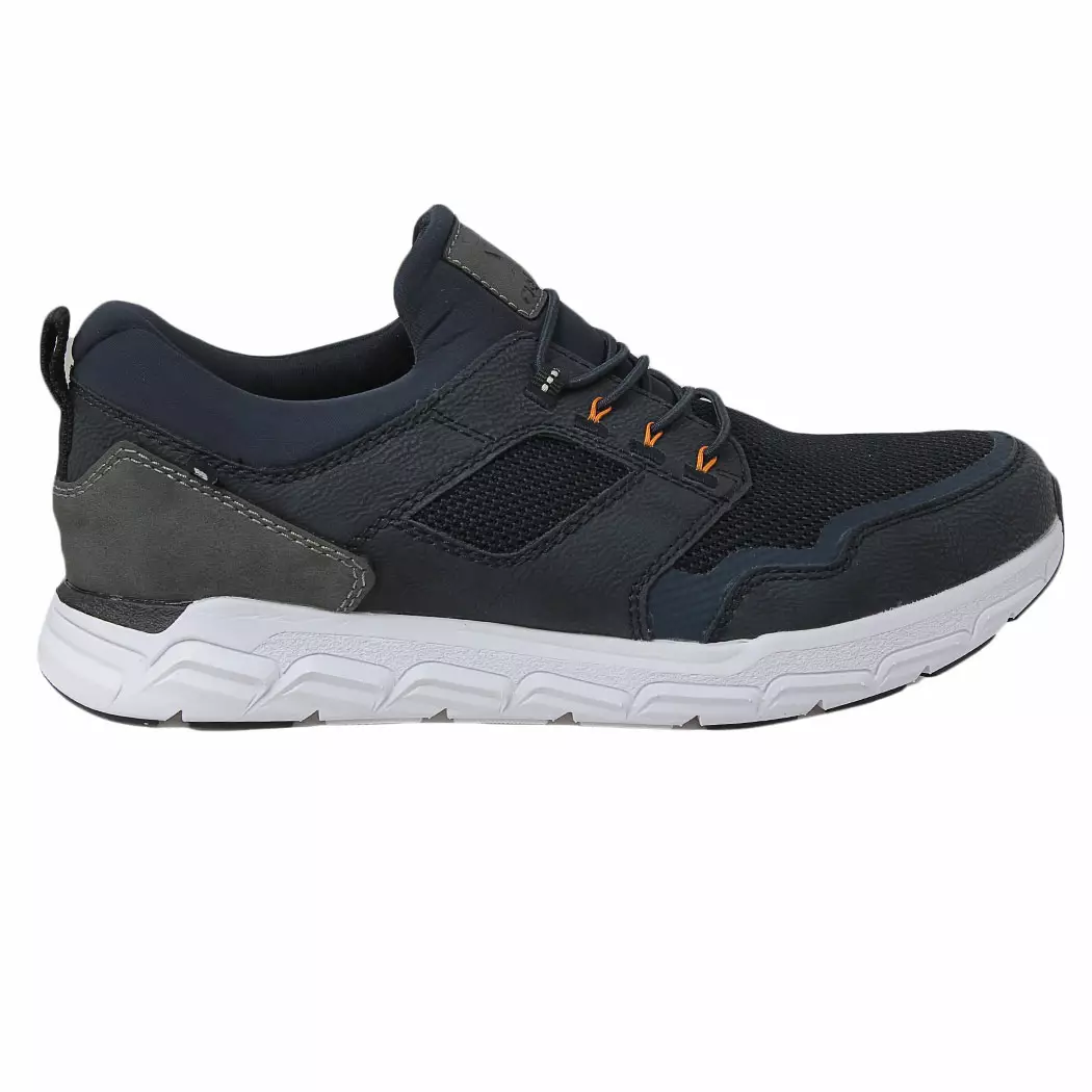 Steppari.fi:stä kävelykengät. Koristeena joustavat venykenauhat. H-lesti (leveä). Rieker soft-pohjalliset ovat vaihdettavat, joten tarvittaessa sujautat kenkiin omia tarpeitasi parhaiten vastaavat pohjalliset. Sisämitta 28,3cm (koossa 43).