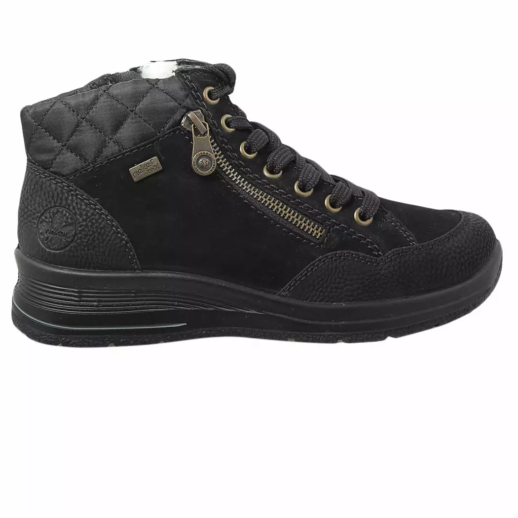 Steppari.fi:stä naisten varsitennarit lämpimällä teddyvuorella ja vedenpitävällä Rieker-TEX-kalvolla. Varren korkeus n. 9 cm: Sisämitta 24,5 cm (koossa 38).