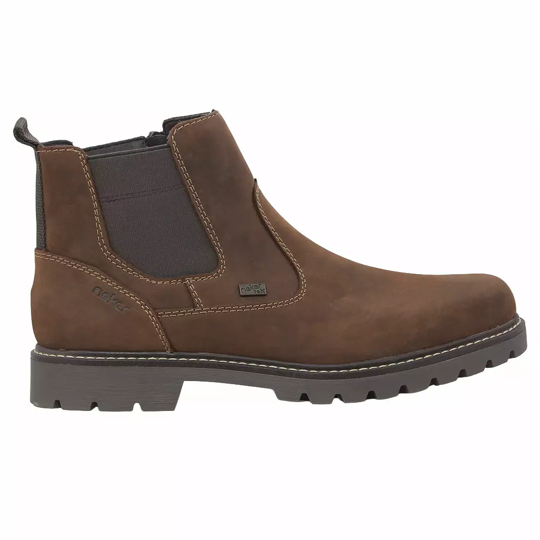 Steppari.fi:stä RIEKER TEX-kalvolla varustetut nupukkinahkaiset chelseanilkkurit lämpimällä villavuorilla. Venyke ja sisäsyrjällä vetoketju. Ulkopohja on kuminen Fiber Grip-pitopohja, jossa on kitkapala. Varren korkeus n.11 cm. Sisämitta 27 cm (koossa 42).