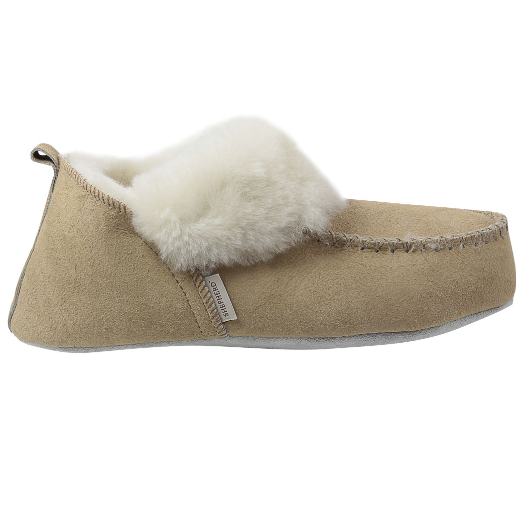Lämpimät Shepherd -tossut on tehty kokonaan lampaanvillasta ja nahasta. Pörröiset tossut ovat mukavat jalassa.