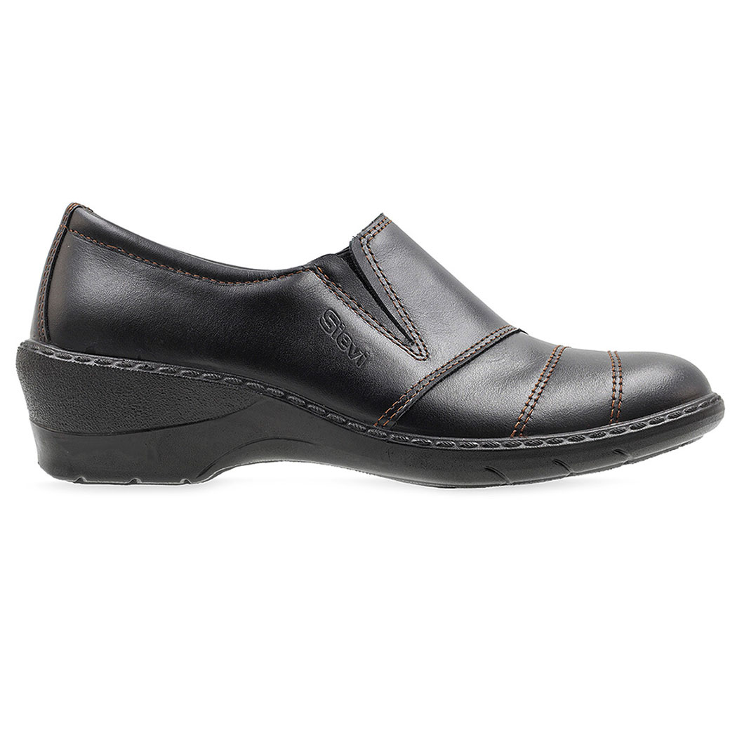 Steppari.fi:stä kiilakorolliset kävelykengät. Ulkosyrjän venyke helpottaa jalkaan pukemista. Päällinen kestävää pintanahkaa ja vuori tekstiiliä. Joustava Flexstep® -pohja on valmistettu polyuretaanista ja se vaimentaa selkään ja jalkoihin kohdistuvia iskuja. Irrotettavat antibakteeriset pohjalliset. ESD-hyväksytty malli.