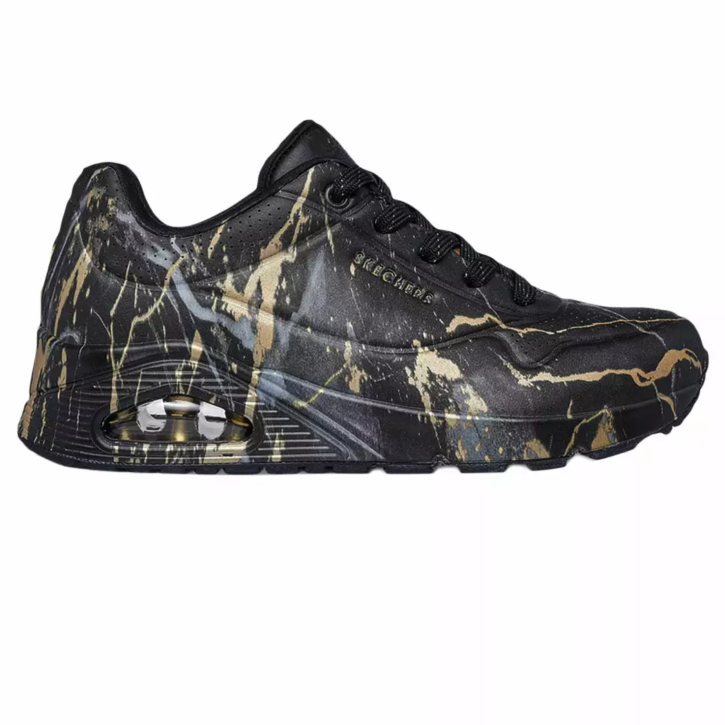 Steppari.fi:stä Skechers Street™ Uno - Marble Marvel -kenkä yhdistää tyylikkyyden ja mukavuuden upealla tavalla. Sen ylellinen marmorikuvioinen duraleather-päällinen ja ainutlaatuinen marmorikuvioitu välipohja luovat näyttävän ilmeen. Kengän sisäpohjana toimii pehmeä ja hengittävä Skechers Air-Cooled Memory Foam®, kun taas Skech-Air® näkyvä ilmatyynypohja takaa kevyen ja vaimennetun askeleen. Täydellinen valinta, kun haluat yhdistää muodin ja mukavuuden saumattomasti!