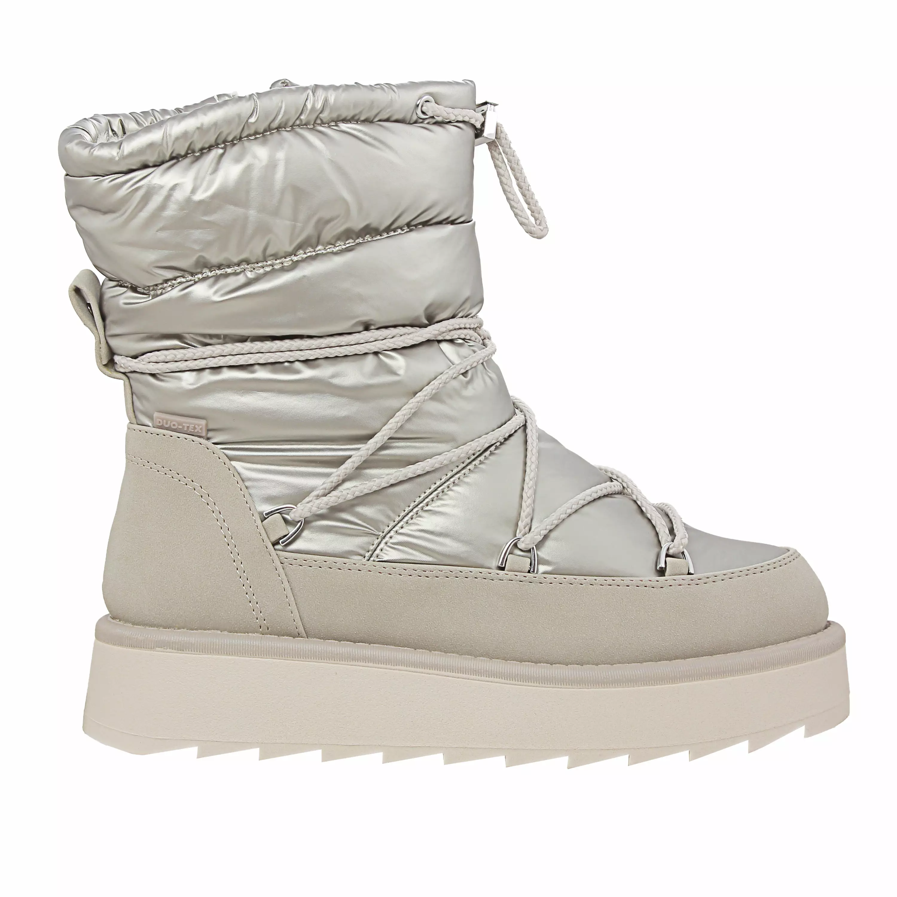 Steppari.fi:stä tyylikkäät naisten talvinilkkurit, joissa on trendikäs platform-pohja. Lämmin ja pehmeä vuori sekä irrotettava lämpöpohjallinen takaavat käyttömukavuuden kylminä päivinä. Vedenpitävä ja hengittävä DUO-TEX-kalvo pitää jalat kuivina kaikissa talvisäissä. Varren korkeus n. 18 cm: Sisämitta 24,5 cm (koossa 38).